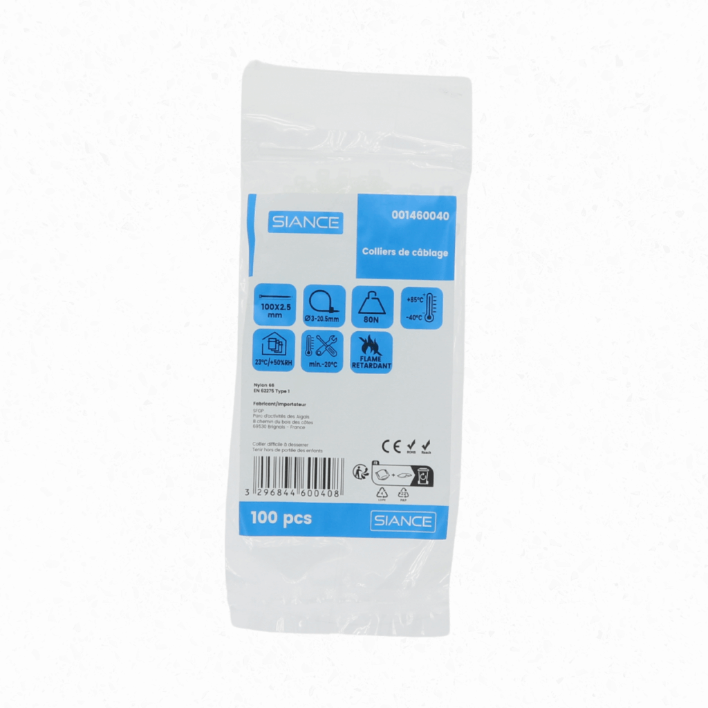 Colliers de câble blancs 2.5 x 100mm (x100)