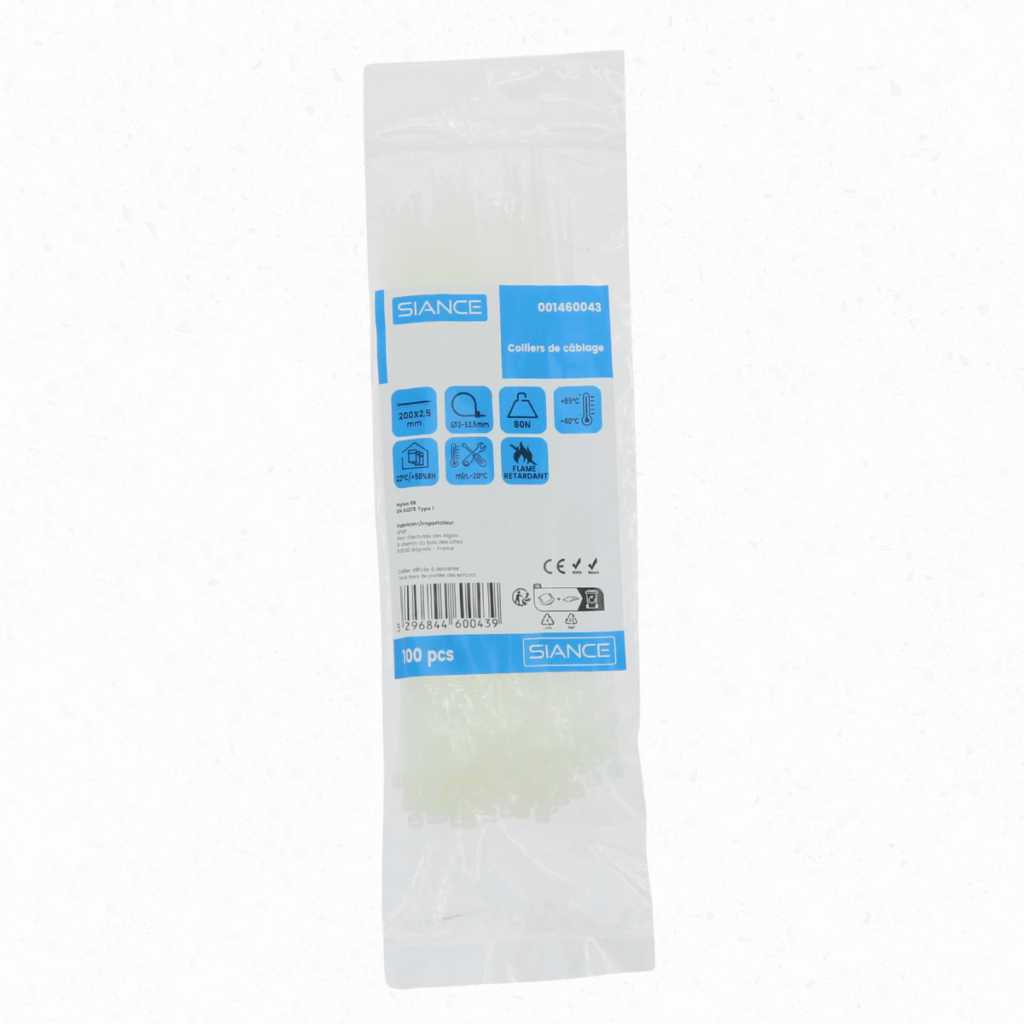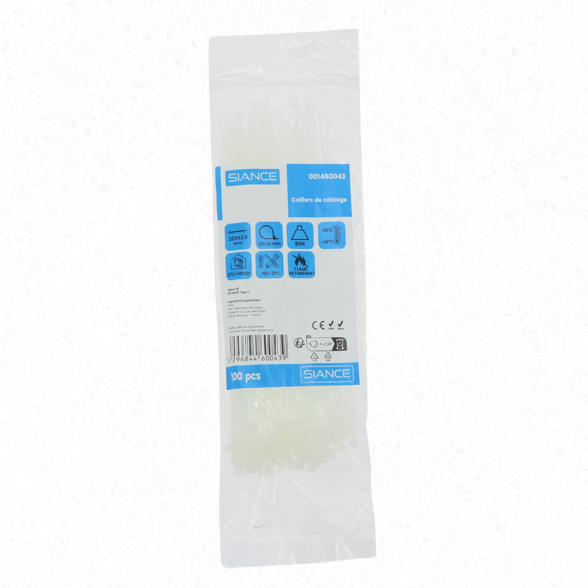 Colliers de câble blancs 2.5 x 200mm (x100)