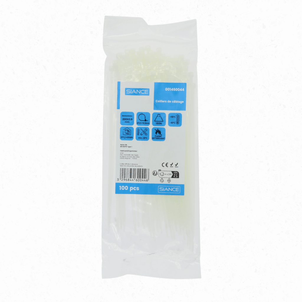 Colliers de câble blancs 3.6 x 200mm (x100)