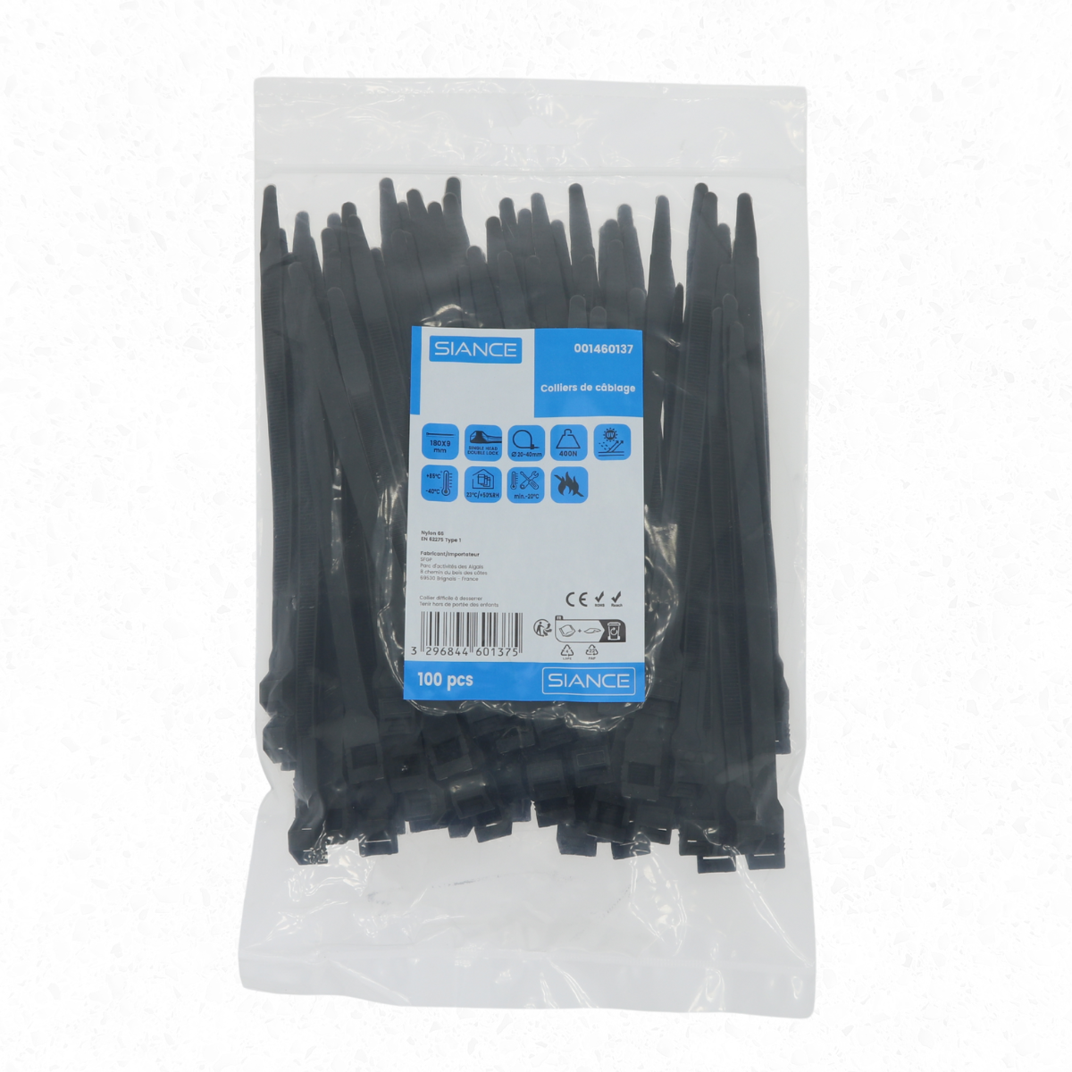 Colliers de câble noirs 3.6 x 200mm (x100)