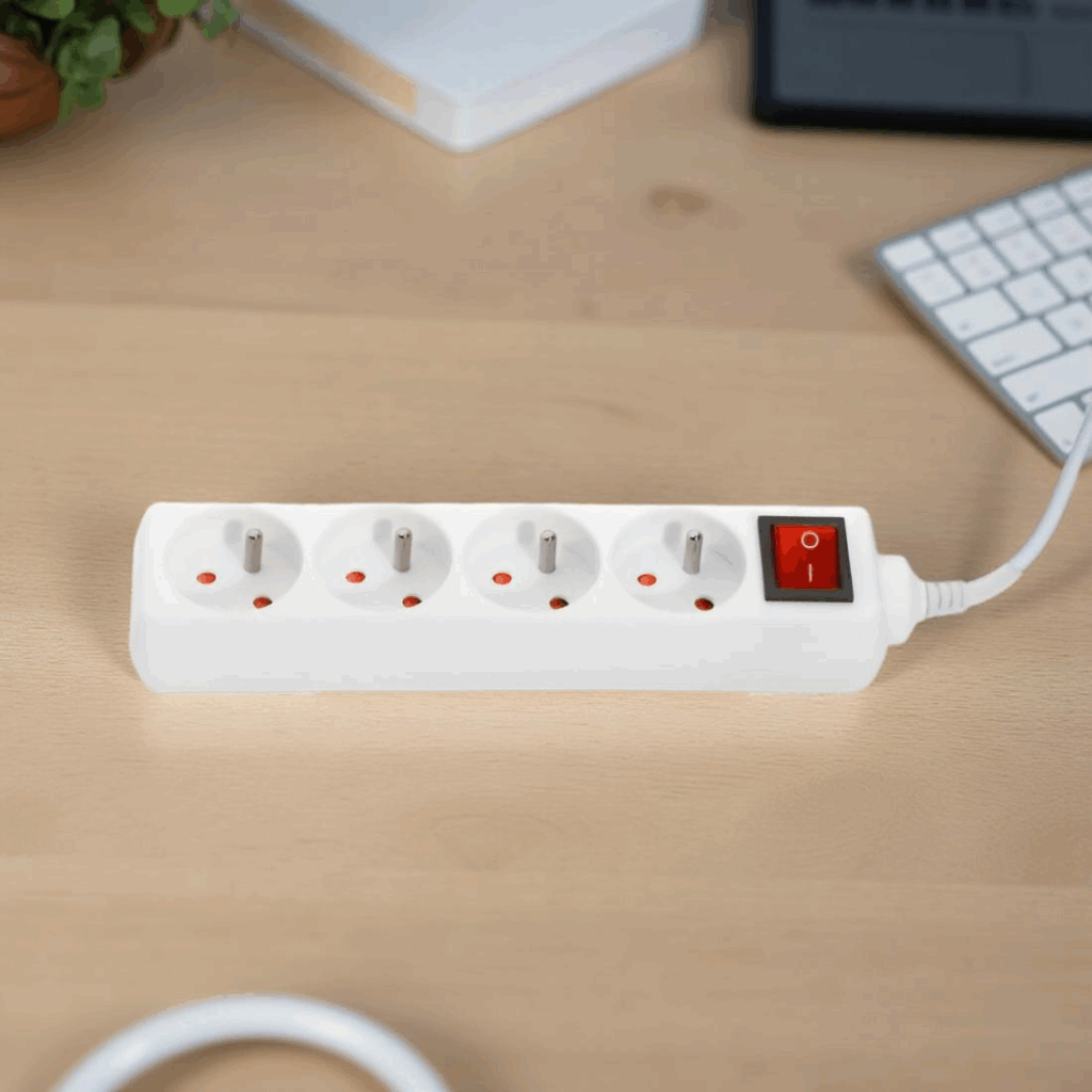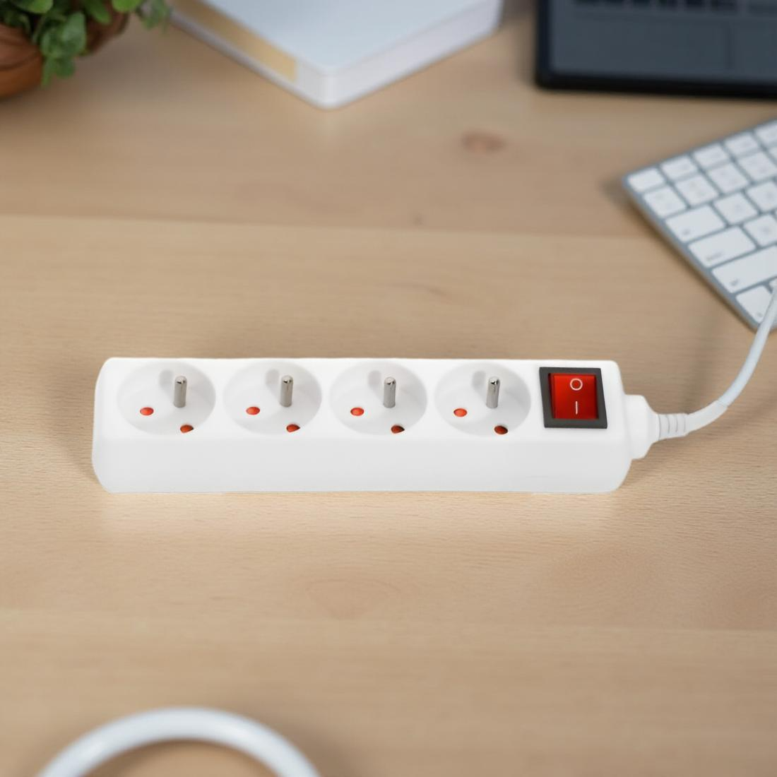 Multiprise d’extérieure 4 prises 2 pôles + terre avec interrupteur