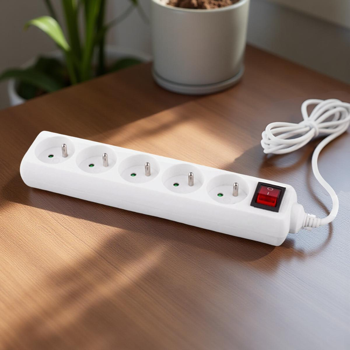 Grâce à ses 5 prises 2P+T, cette multiprise vous offre la flexibilité de connecter tous vos appareils, qu’ils soient avec ou sans mise à la terre. Avec une puissance maximale de 3680W, elle est parfaite pour tous vos besoins quotidiens, du matériel informatique aux petits appareils électroménagers.