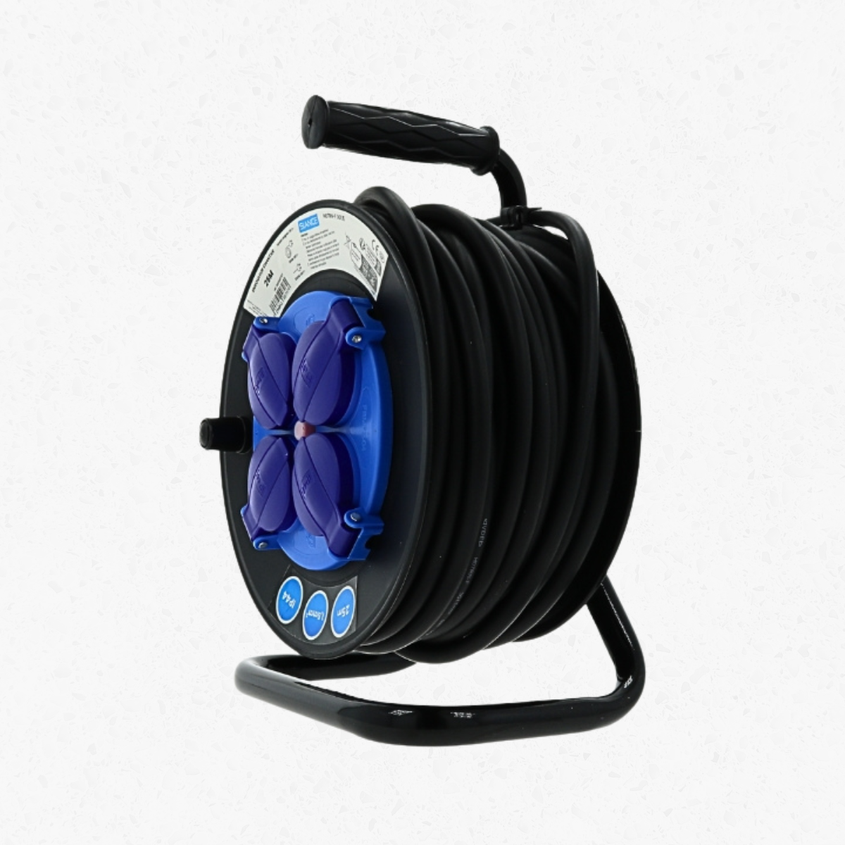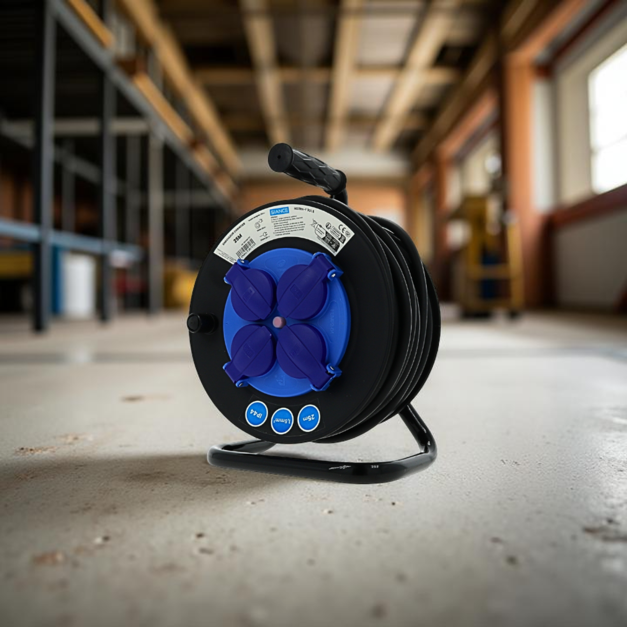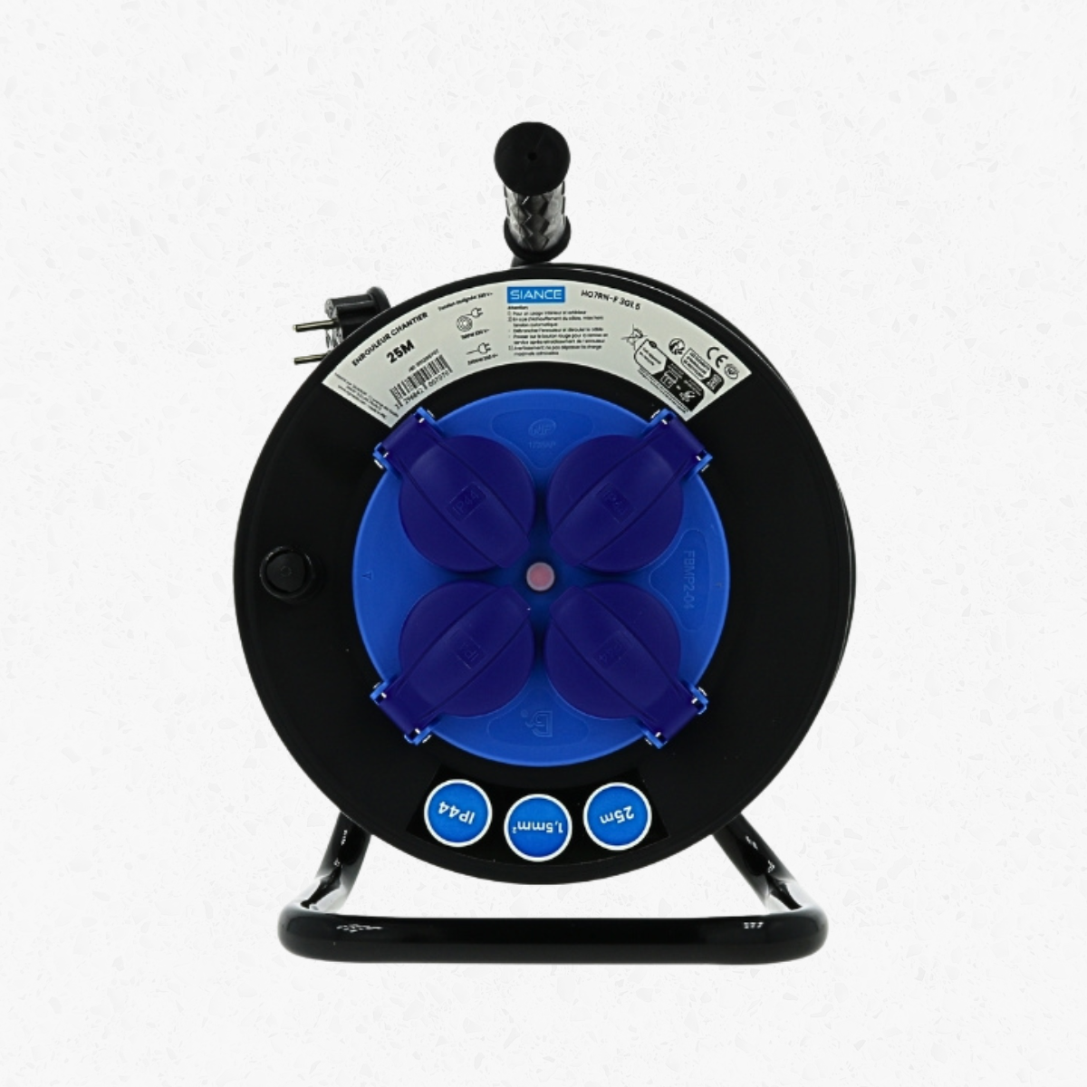 Avec ses 25 mètres de câble, cet enrouleur vous permet d’atteindre les zones les plus éloignées. Il est équipé de 4 prises 2P+T, idéales pour brancher plusieurs outils simultanément, comme des perceuses, des scies ou des ponceuses.