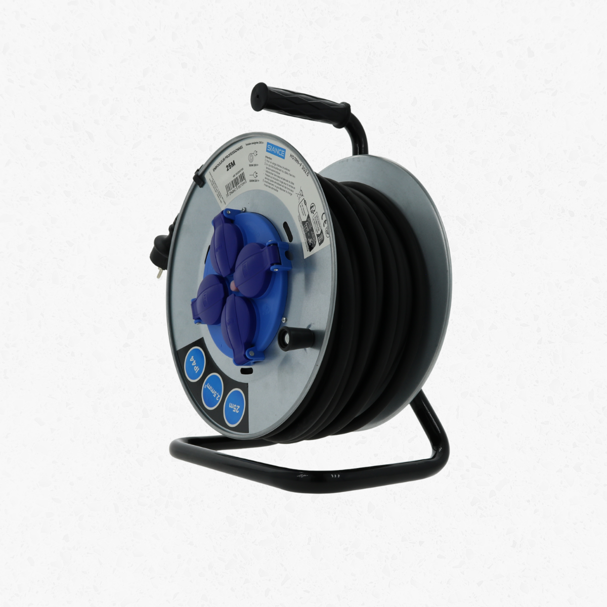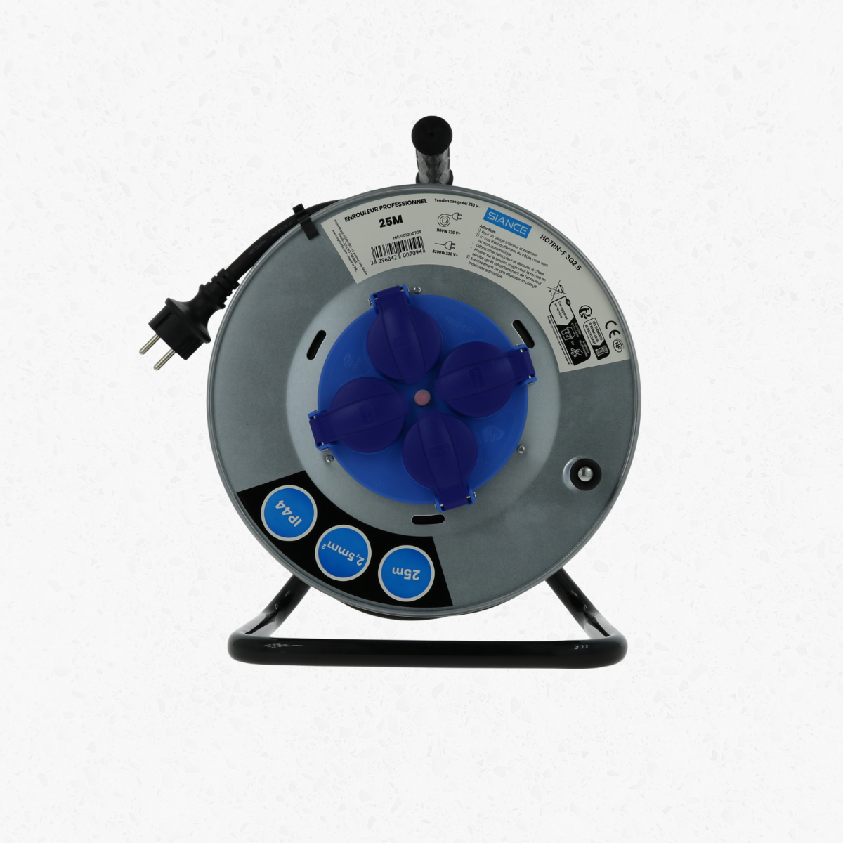 Avec ses 25 mètres de câble, cet enrouleur offre une portée optimale pour tous vos projets. Il est équipé de 4 prises 2P+T, permettant de brancher plusieurs outils gourmands en énergie.
