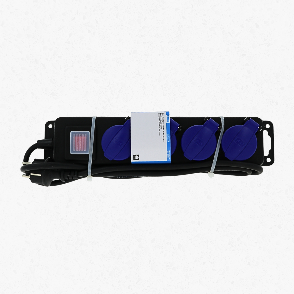 L’indice de protection IP44 garanti que le bloc de prises est protégé contre les corps solides supérieurs à 1mm et contre les éclaboussures d’eau. La présence d’une prise de terre assure une protection accrue contre les chocs électriques.